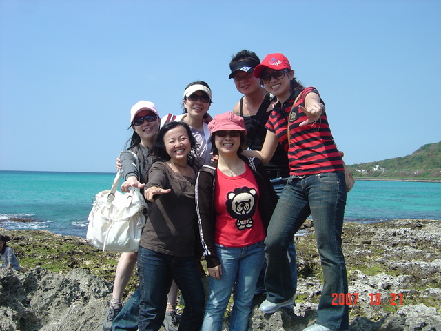 到了沙島拍照..看海..不過太陽依舊對我們笑得很”開”..唉..